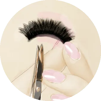 Using our Lash Applicator Tool, lift the lashes to your lash line to measure. Trim the glued tabs, and excess lash from the inner corner.
