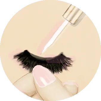 Apply a thin line of glue to the lash band with the brush applicator. Apply an extra dot at each end and at the center for an extra strong hold.